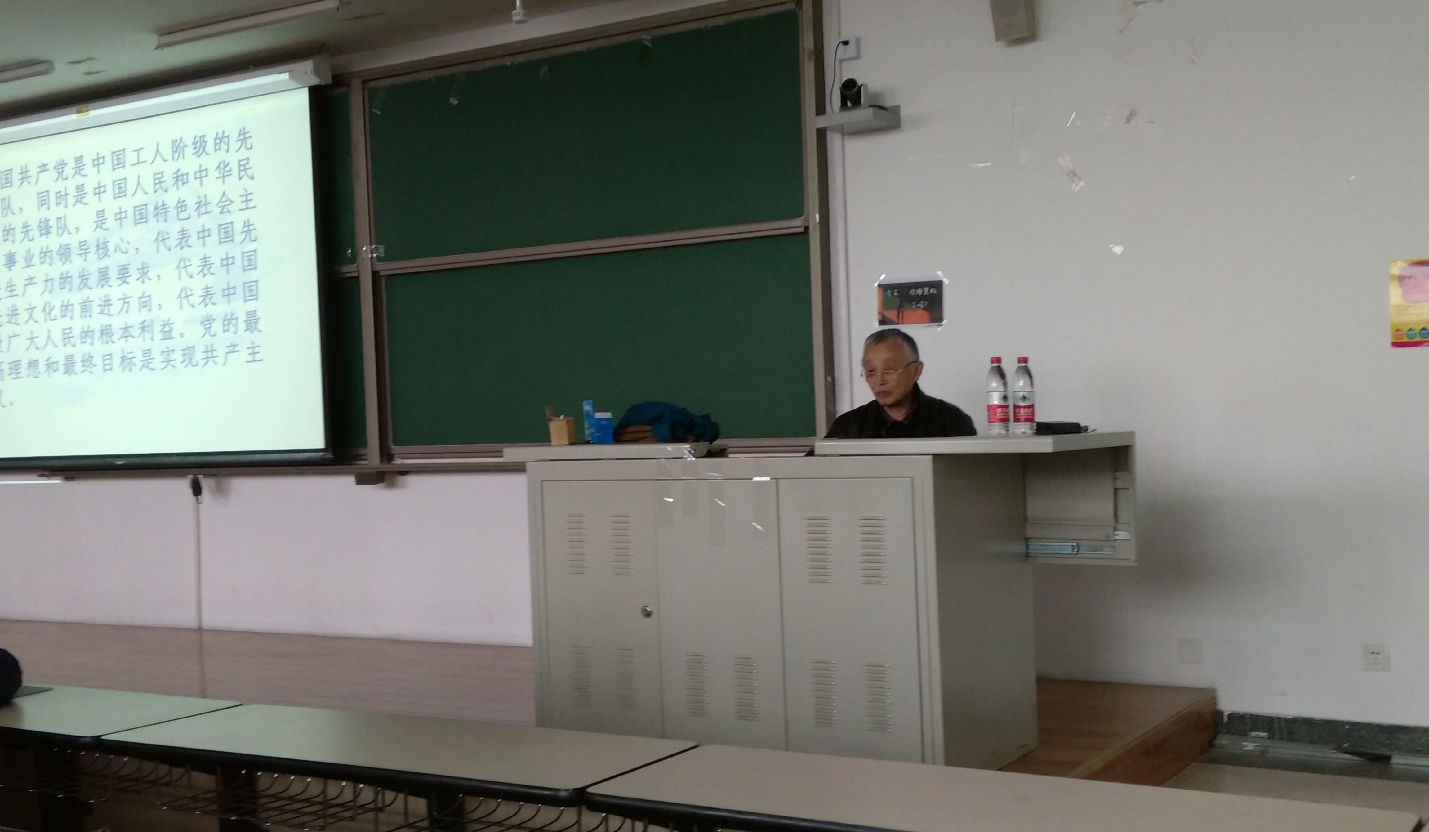 本堂党课胡老先生首先从党的性质、宗旨谈起,以党章总纲部分为主要内容,结合实际解读了中国共产党的先进性,着重对党的最高理想和最终目标是实现共产主义进行了深刻解读,认为共产主义不仅仅是一种高级的社会制度,更是一项持久的群众实践,是一场需要不断为之奋斗的运动;然后胡老先生讲到中国共产党的行动指南和指导思想是马克思列宁主义、毛泽东思想、邓小平理论、“三个代表”重要思想和科学发展观。他强调,要想维护党的稳定与发展,党的指导思想是工人阶级先锋队的根本,在这个问题上如果不用马克思列宁主义的理论作为指导思想,那么这个政党必然为资产阶级的思想所侵蚀,导致这个党的变质和异化,在这里没有中间道路,没有可以调和的余地;最后胡懋仁老师结合历史现实,讲到了发展生产力、坚持公有制等一些党的方针政策的现实意义,深刻论证了中国社会主义建设的必然胜利。