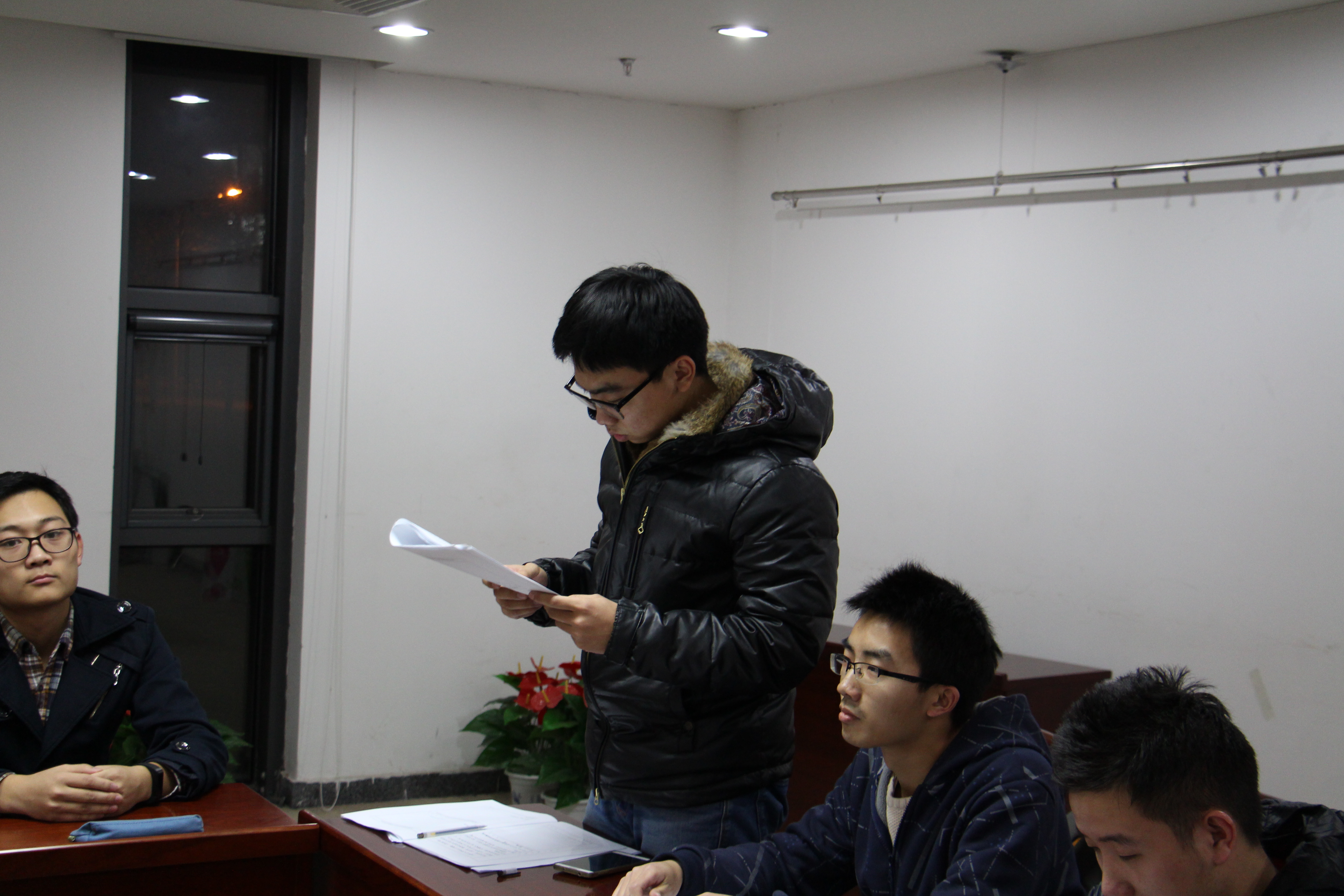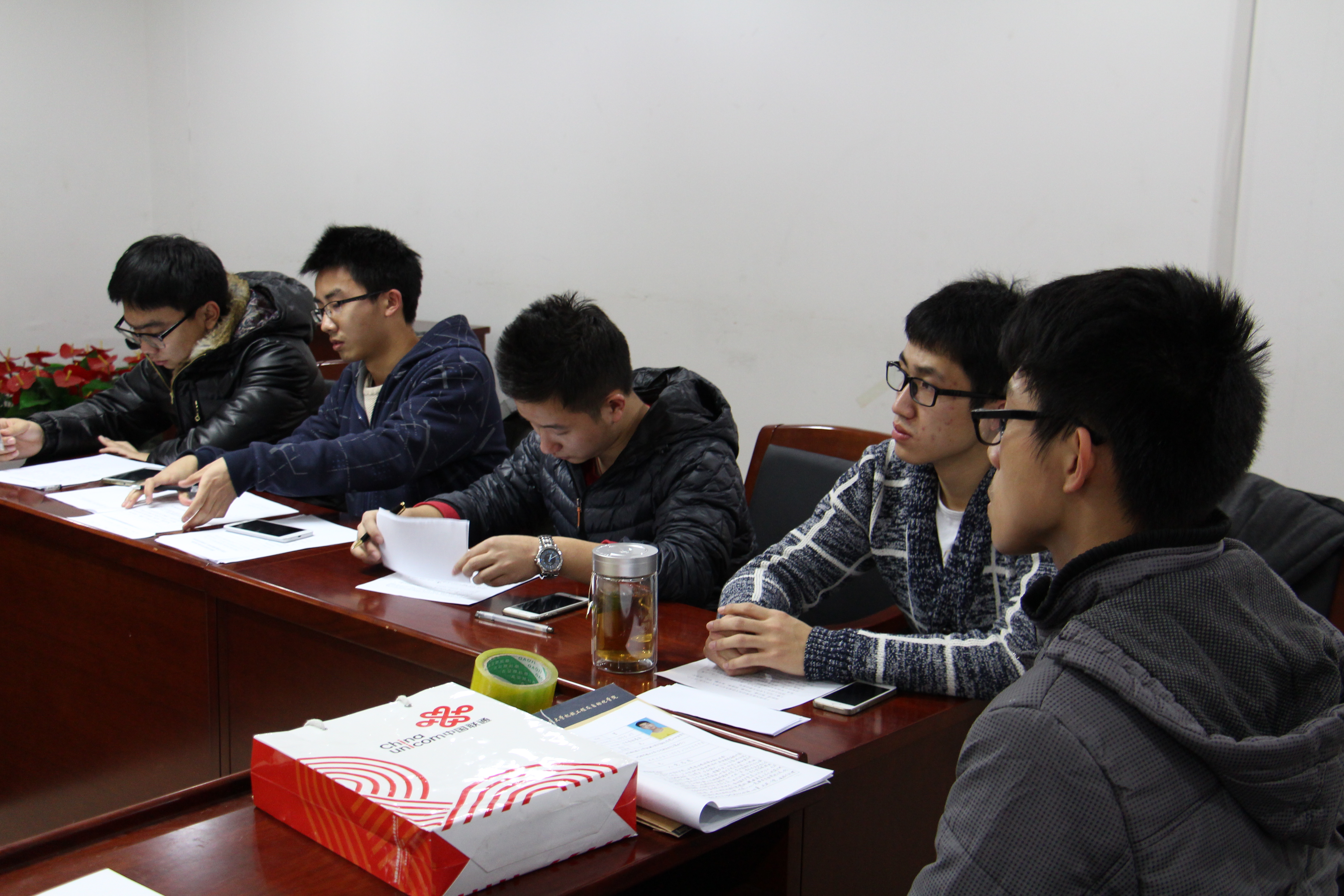 2015年12月3日傍晚18点30分由我院2014级、2015级组成的沙河校区学生第七党支部在4号实验楼105会议室举行接受预备党员支部大会,本次大会旨在讨论接收石静仪、尹天杰等十一名同学成为预备党员,吸纳优秀学生壮大党员队伍,为支部将来的发展打下坚实的基础。大会支部书记、2015级辅导员李阳同志主持,参加此次大会的还有支部3名正式党员和一名预备党员:分别是2015级辅导员黄晋国同志,学生党员廖子维同志和徐强同志,2014级辅导员罗敏同志。