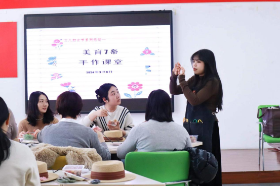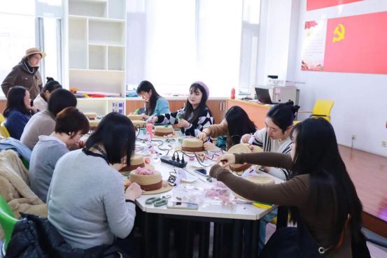 美育七系 手作课堂——机械学院举办三八妇女节花帽手工制作课堂