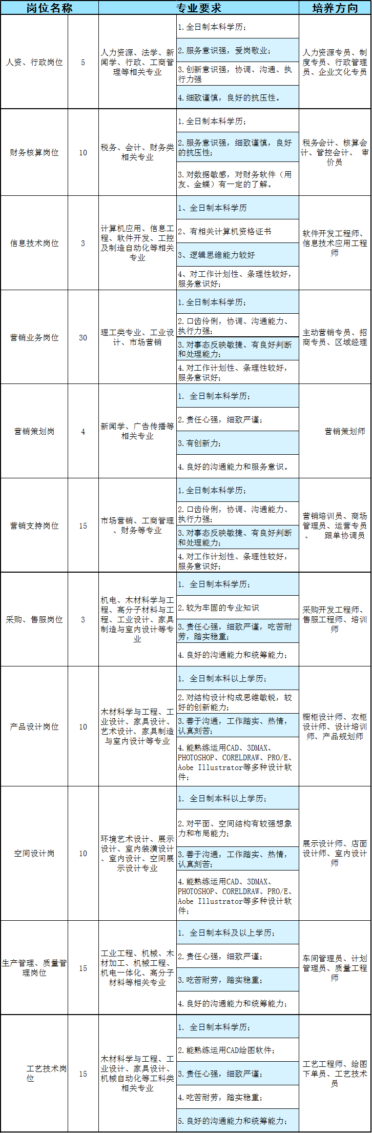 我们的企业是一个平台,一个让资产所有者、知识所有者、劳力所有者共谋合作,实现共赢互利的平台。无论您来自何所学校,学的什么专业,只要能进入欧派这个平台,均能在这个平台上共同劳动、创造和分享,共同实现价值。多年来,欧派一直致力打造中国最具吸引力的职业经理人合作发展平台,使无数精英才俊得到淋漓尽致的发挥!