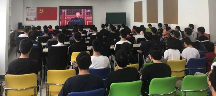 10月1日上午10时,来自机械学院本科生、研究生的近百余名学子在新主楼B506集中观看伟大中华人民共和国成立70周年庆祝大会直播。