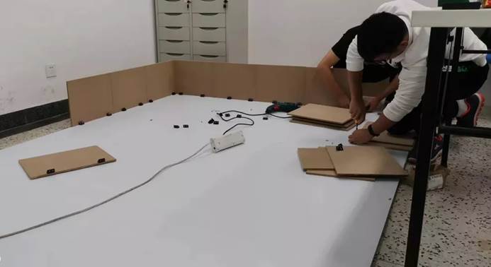 同时,比赛场地的搭建也在如火如荼地进行。再好的设计图纸,也最终要落实在每一块材料的尺寸,每一个螺丝的位置,机器人协会的优秀同学,随时可以变身“施工大队”。