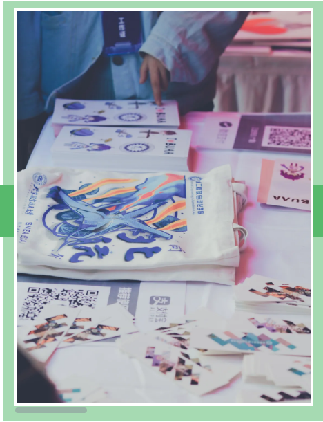 如果你曾来过机械学院的场地,就一定会被丰富精美的校庆周边所吸引:贴纸、年历、帆布包、书签……只要参加了机械学院的游戏就一定能拿到其中一件奖品。不到半天时间,热情的同学们就赢走了所有周边。值得一提的是,这些设计全部来自机械学院工业设计专业大三的同学们。