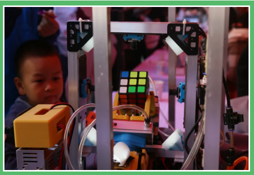 北航机器人队倾囊相助,为校庆嘉年华提供了魔方机器人。现场挑战的人排起了长队,人类和人工智能的比拼正式在北航68年校庆当天拉开帷幕。悄悄告诉你们,其实这次机器人放水了哟,其实他九秒钟就能还原整个魔方了!