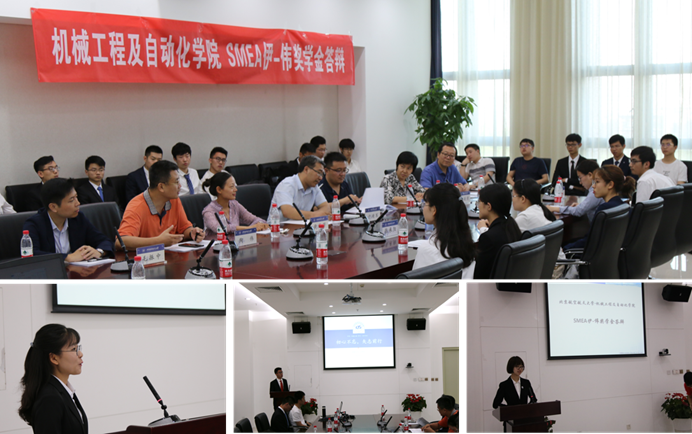 5月23日下午,机械工程及自动化学院“SMEA伊-伟”奖学金答辩评审会在沙河校区国实A413会议室成功举行,捐赠校友企业方代表瑞达飞行科技有限公司总经理陶伟先生、产品研究部经理毛振中先生、伊天行技术有限公司市场部高级经理黄荣芳女士出席答辩会,并与机械学院本科教学副院长、党委副书记、本科教学督导组成员、班主任和辅导员共同组成评审委员会。来自2015级和2016级的28名同学进行了现场答辩展示。答辩会由2015级本科生苏诗晴主持。