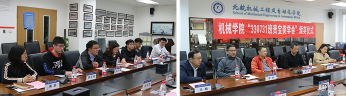 10月26日上午,机械工程及自动化学院“330731班贵宝奖学金” 颁奖仪式在新主楼A849举行。机械学院主要领导、机械学院330731班五位校友代表以及三位“贵宝奖学金”获得者出席。仪式由张承阳老师主持。