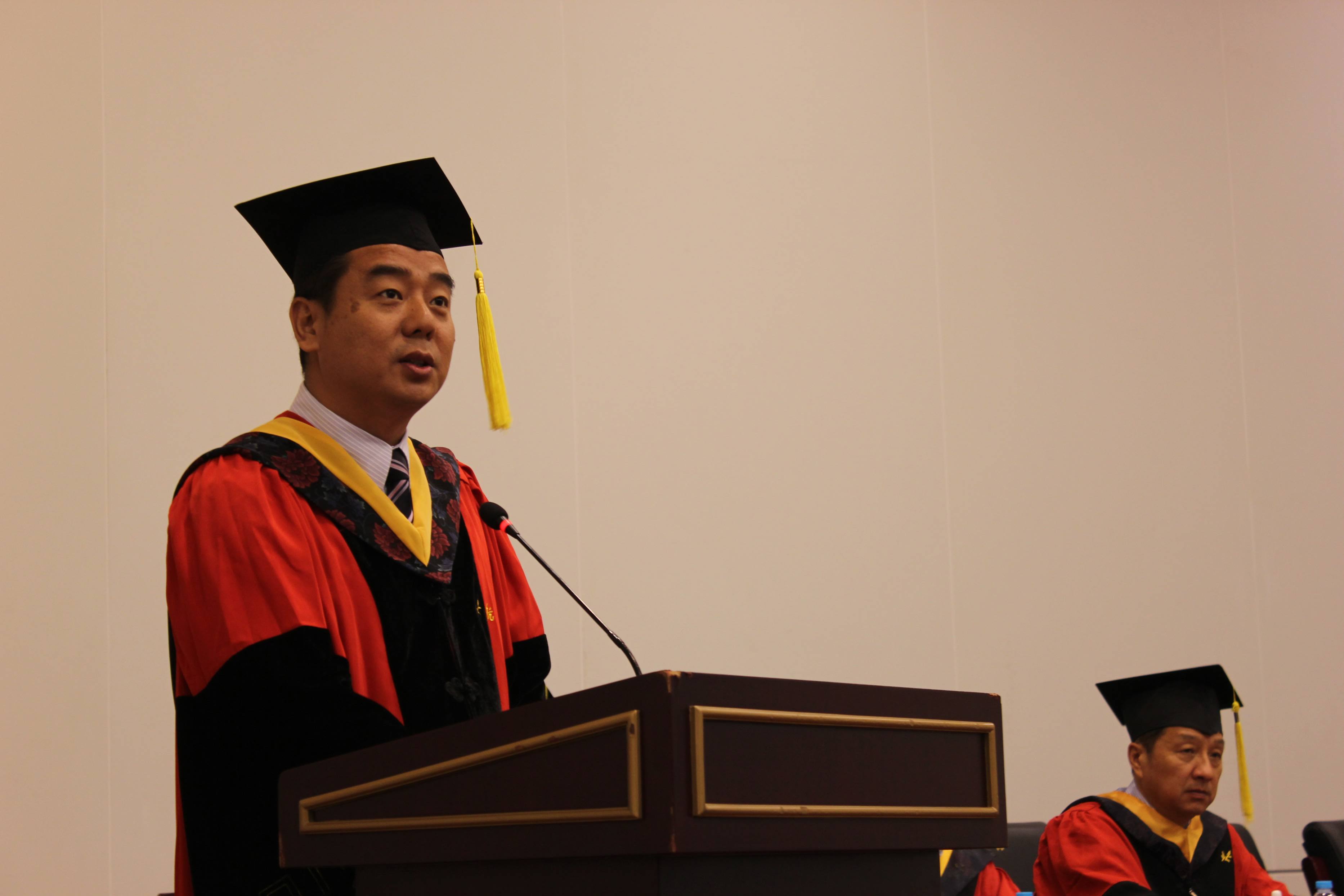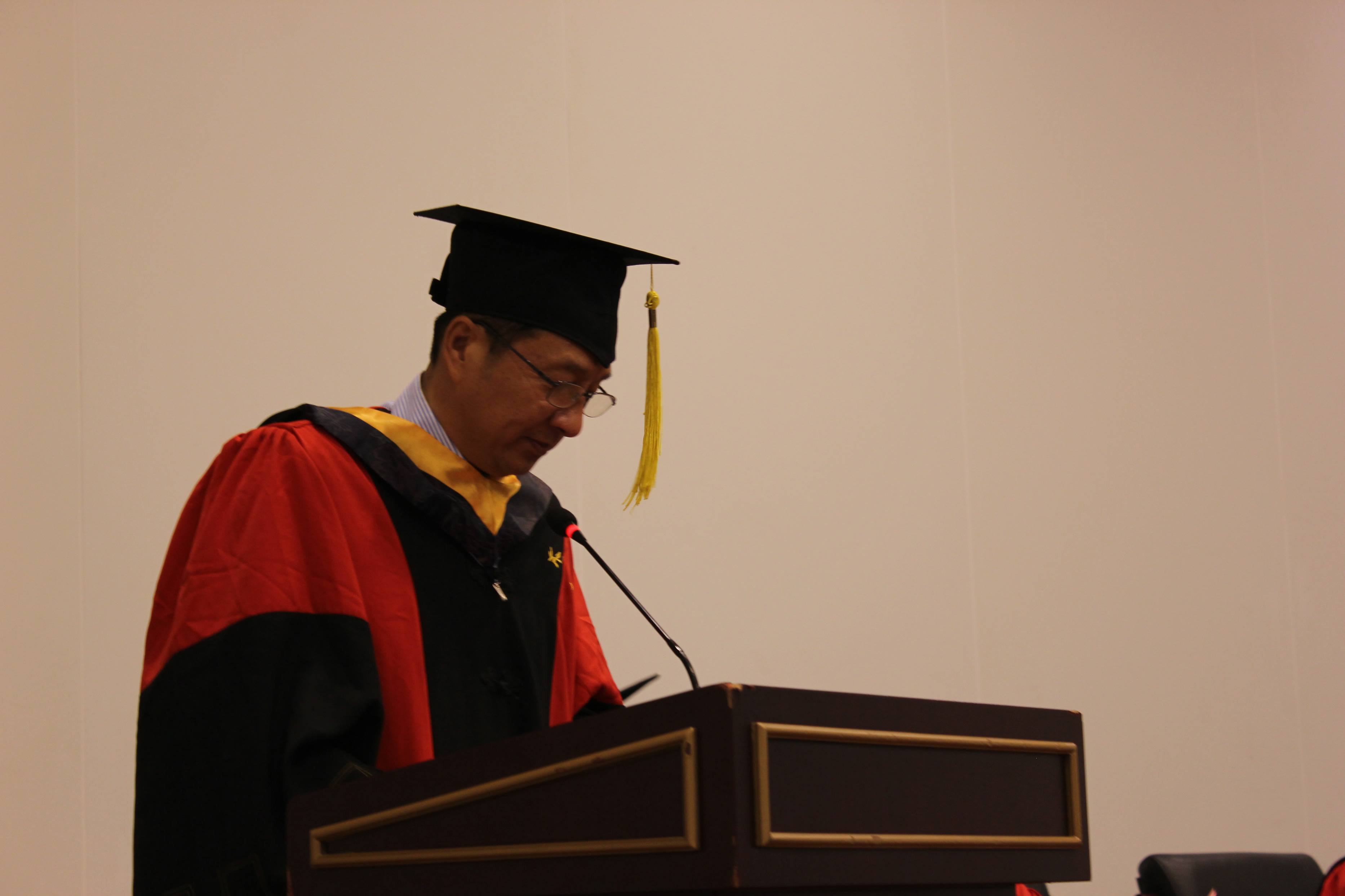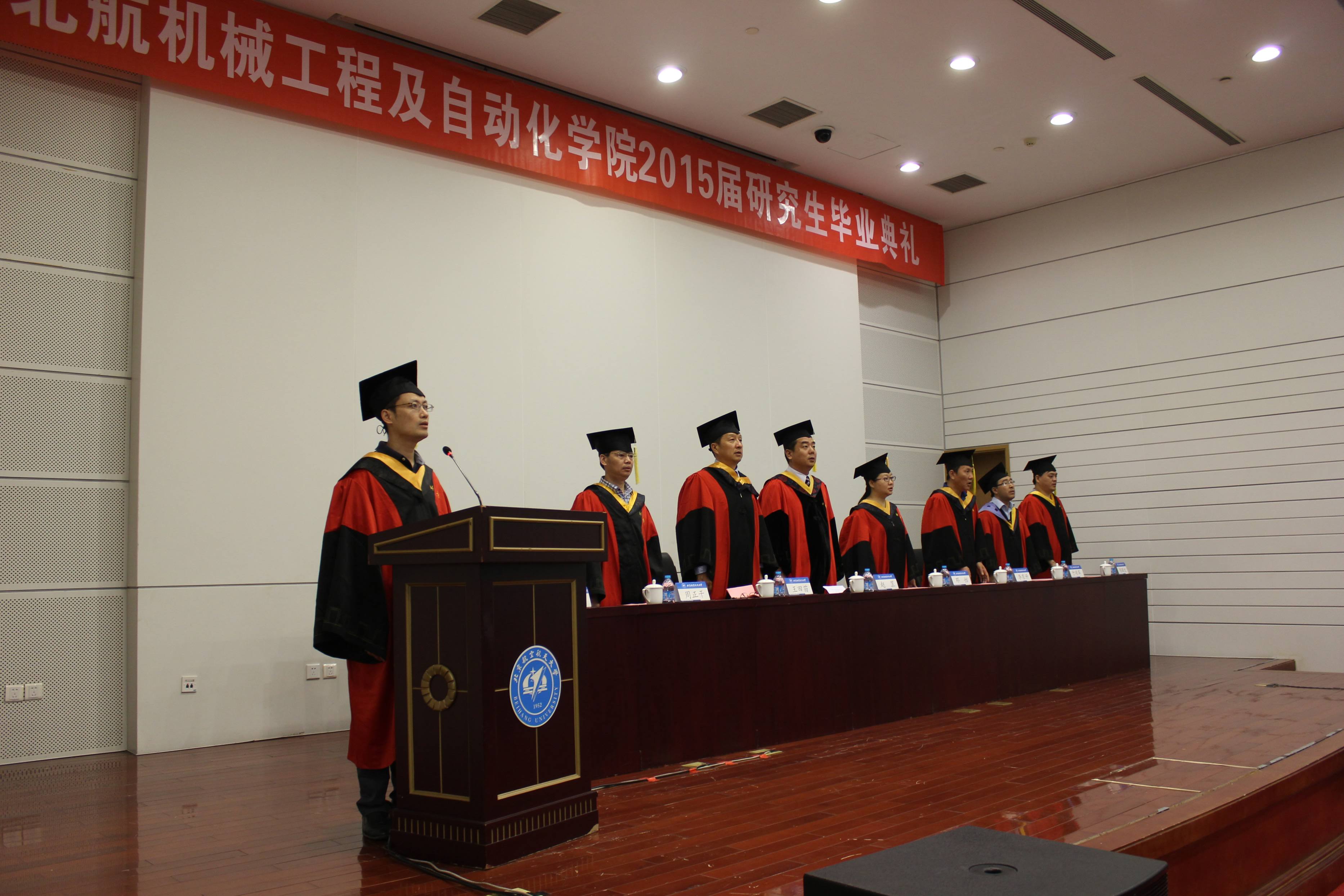 院长赵罡教授向全体毕业生致以热烈的祝贺,并向始终支持理解他们的父母、导师、辅导员、教务老师表示衷心的感谢。他回顾了2015届全体毕业研究生取得的优异成绩与学院的突出业绩,赞扬了他们以自己的行动诠释了青春的魅力与北航人的风采。最后,他与毕业生分享了几点体会,希望毕业生能够在以后的生活中学会做人,学会吃亏,懂的吃苦,敢于担当,兼容并包,坚持梦想,勤奋努力,拥有一颗恒心,耐得住寂寞,保持身心的健康,希望大家能常回母校看看。