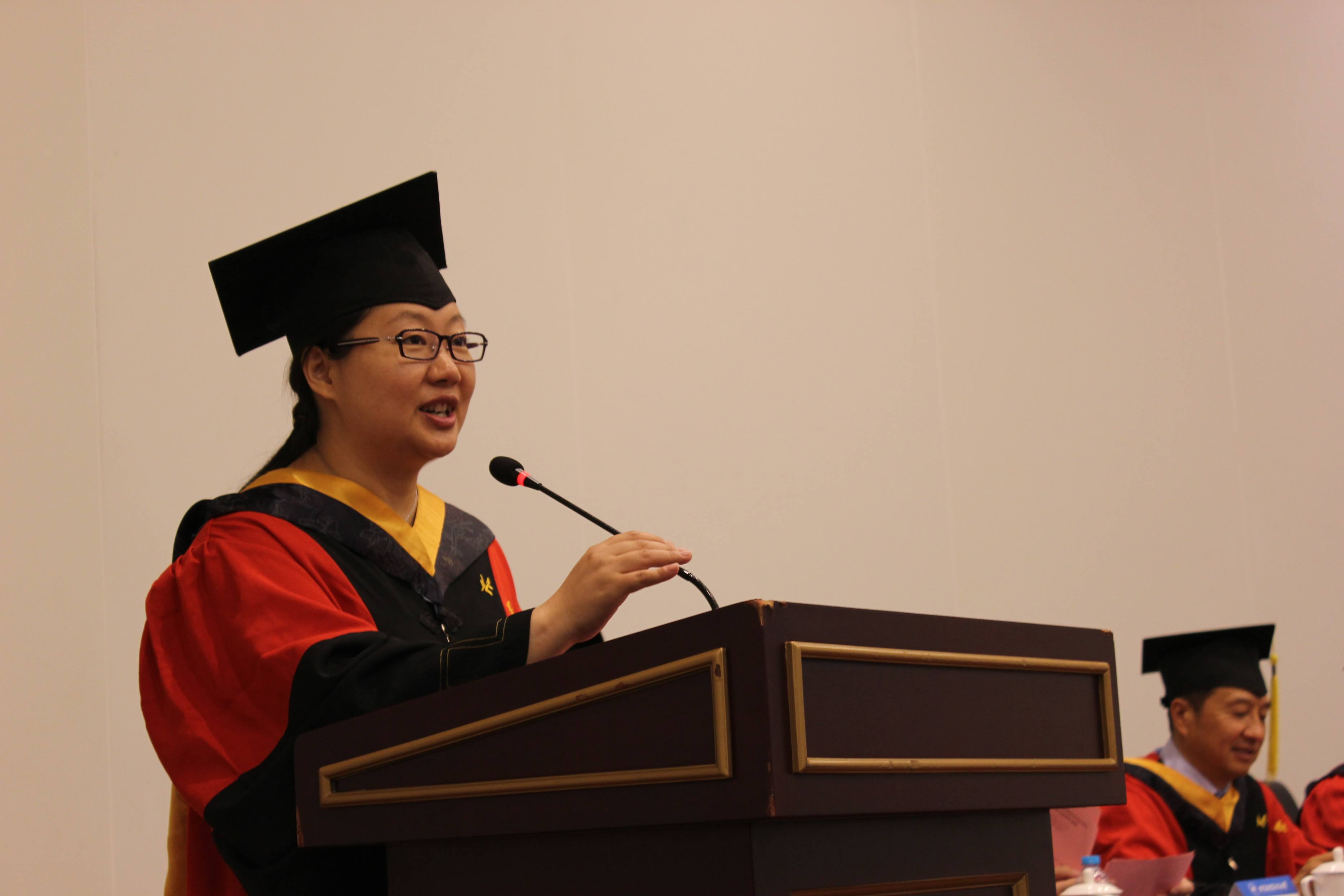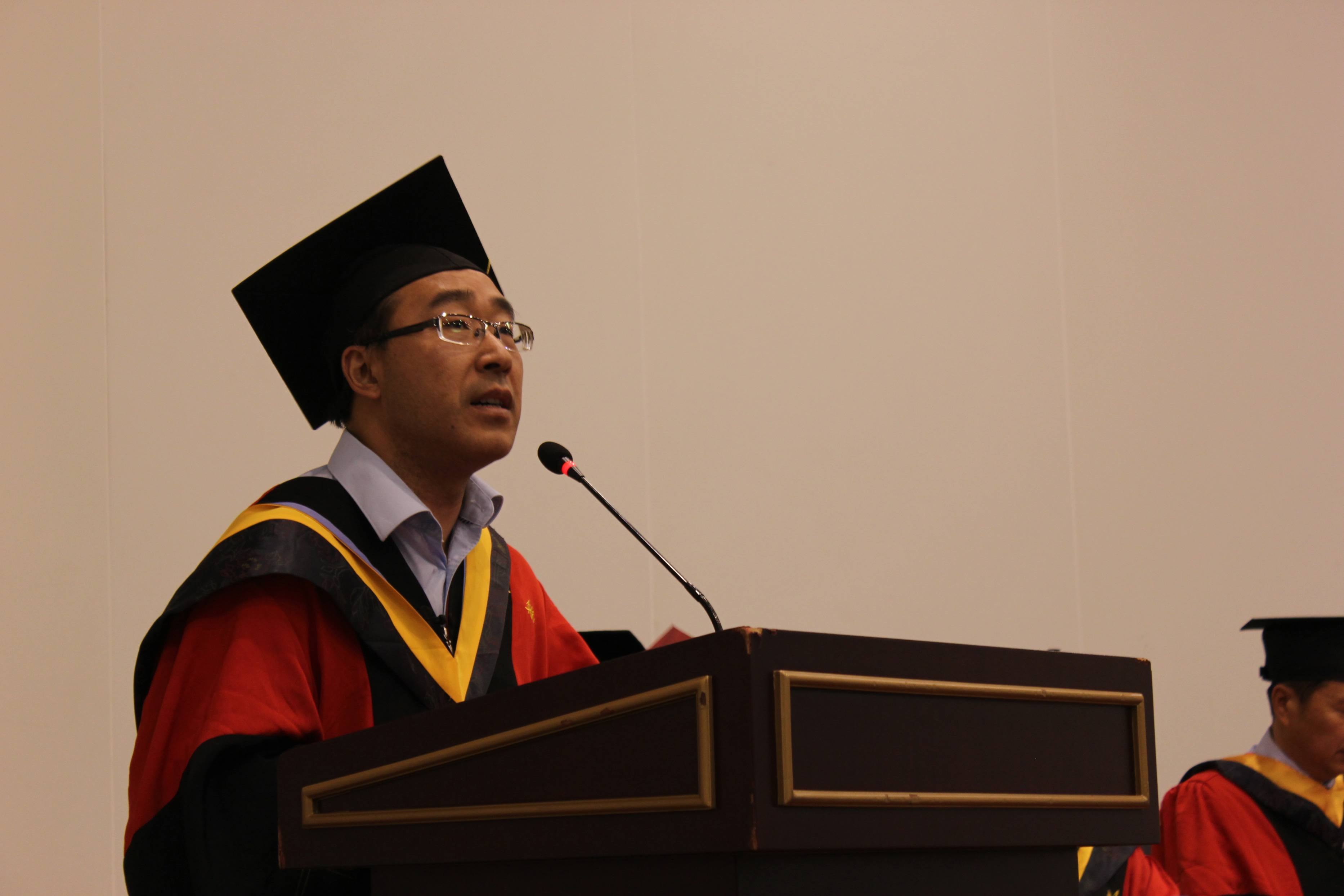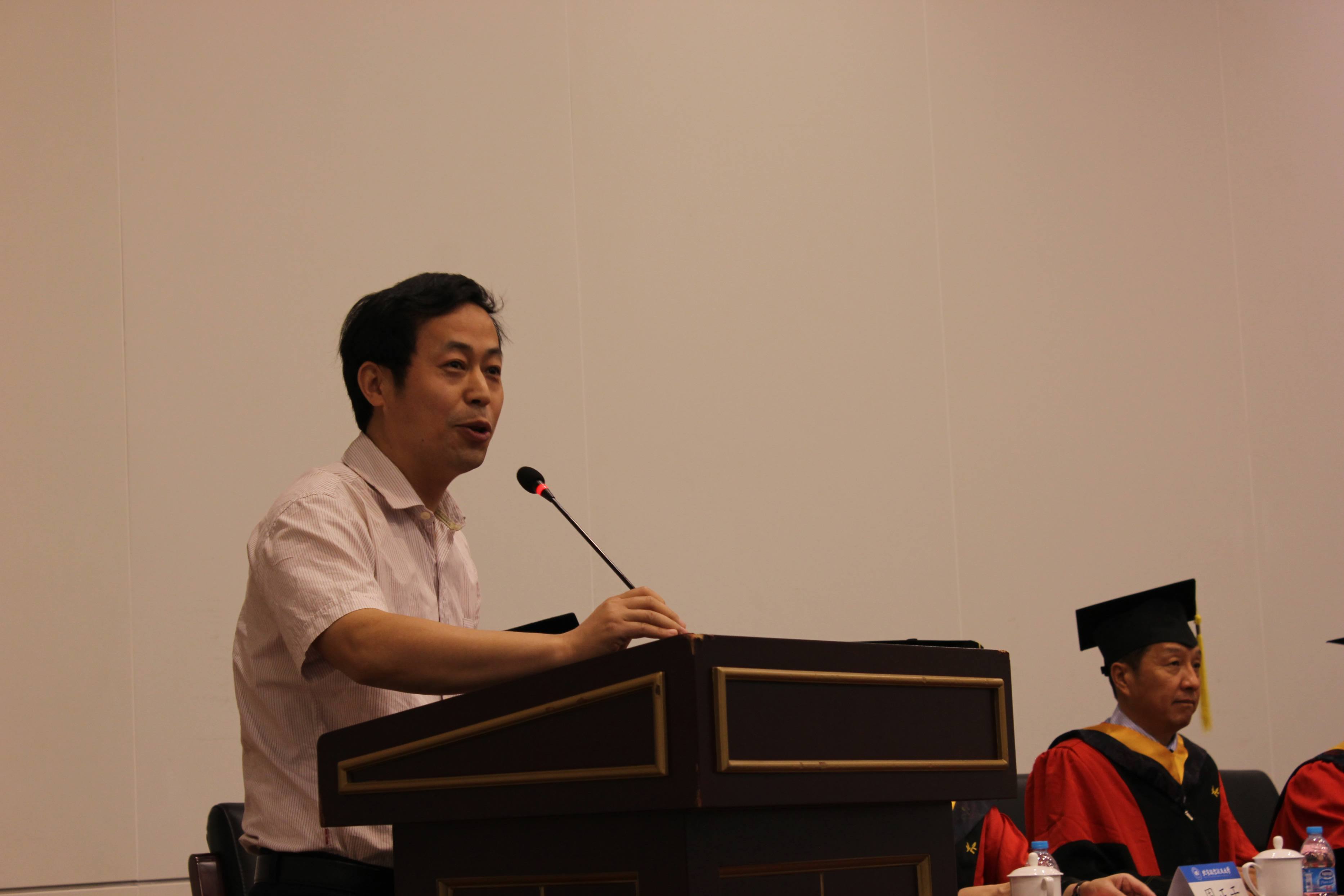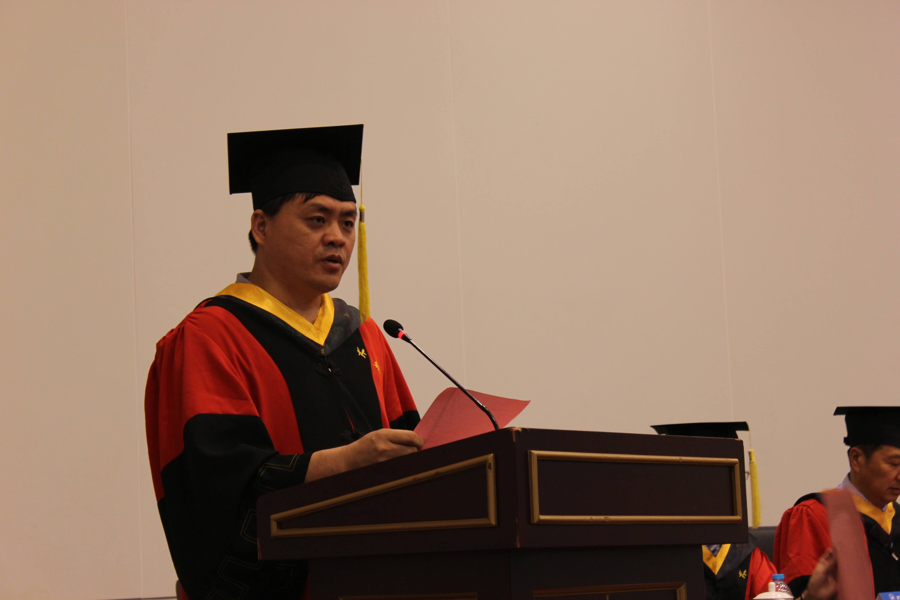 院长赵罡教授向全体毕业生致以热烈的祝贺,并向始终支持理解他们的父母、导师、辅导员、教务老师表示衷心的感谢。他回顾了2015届全体毕业研究生取得的优异成绩与学院的突出业绩,赞扬了他们以自己的行动诠释了青春的魅力与北航人的风采。最后,他与毕业生分享了几点体会,希望毕业生能够在以后的生活中学会做人,学会吃亏,懂的吃苦,敢于担当,兼容并包,坚持梦想,勤奋努力,拥有一颗恒心,耐得住寂寞,保持身心的健康,希望大家能常回母校看看。