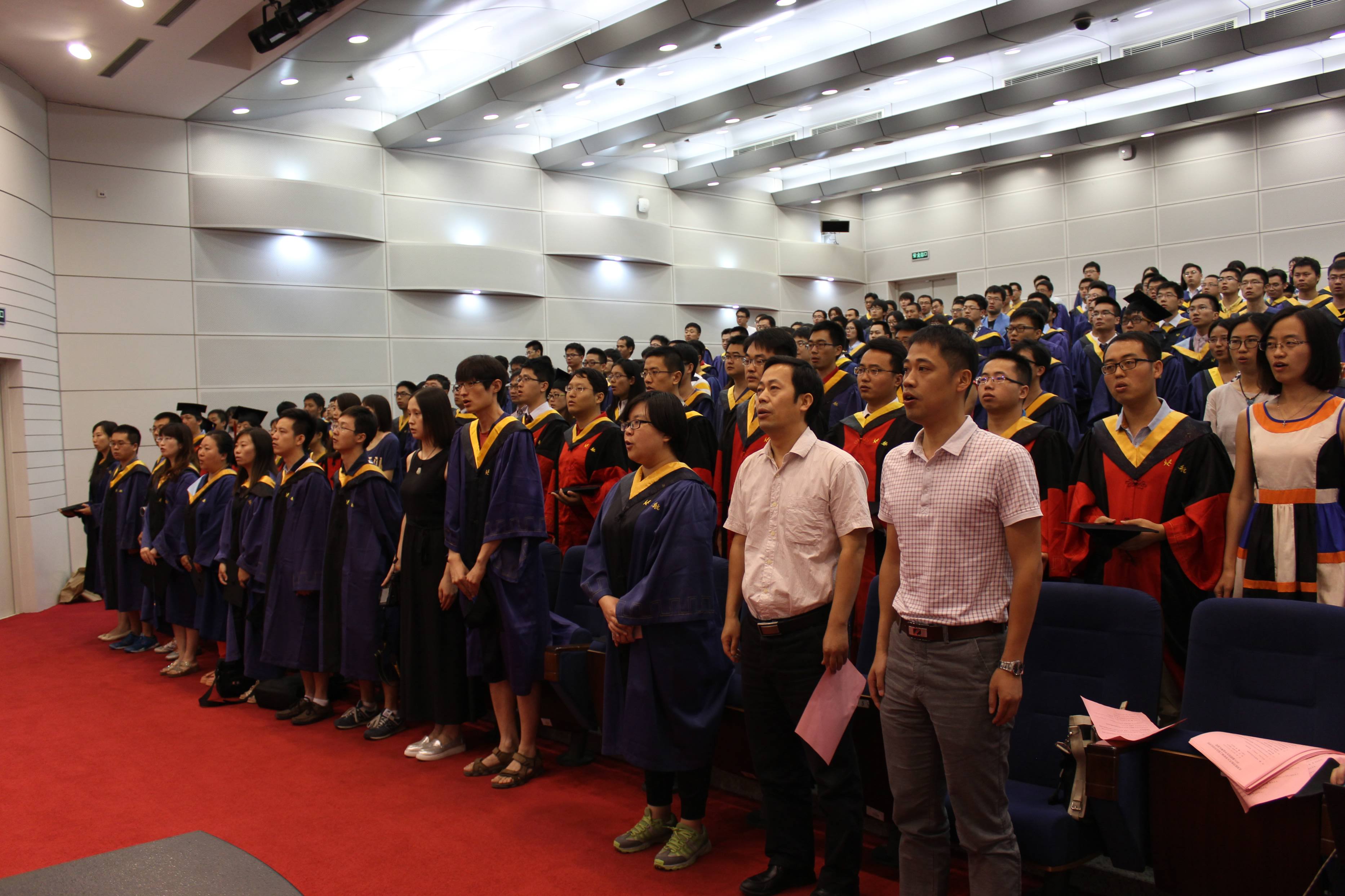 最后,毕业典礼在全体毕业生歌唱的校歌《仰望星空》中落下帷幕。会后,全体师生在新主楼前合影留念。