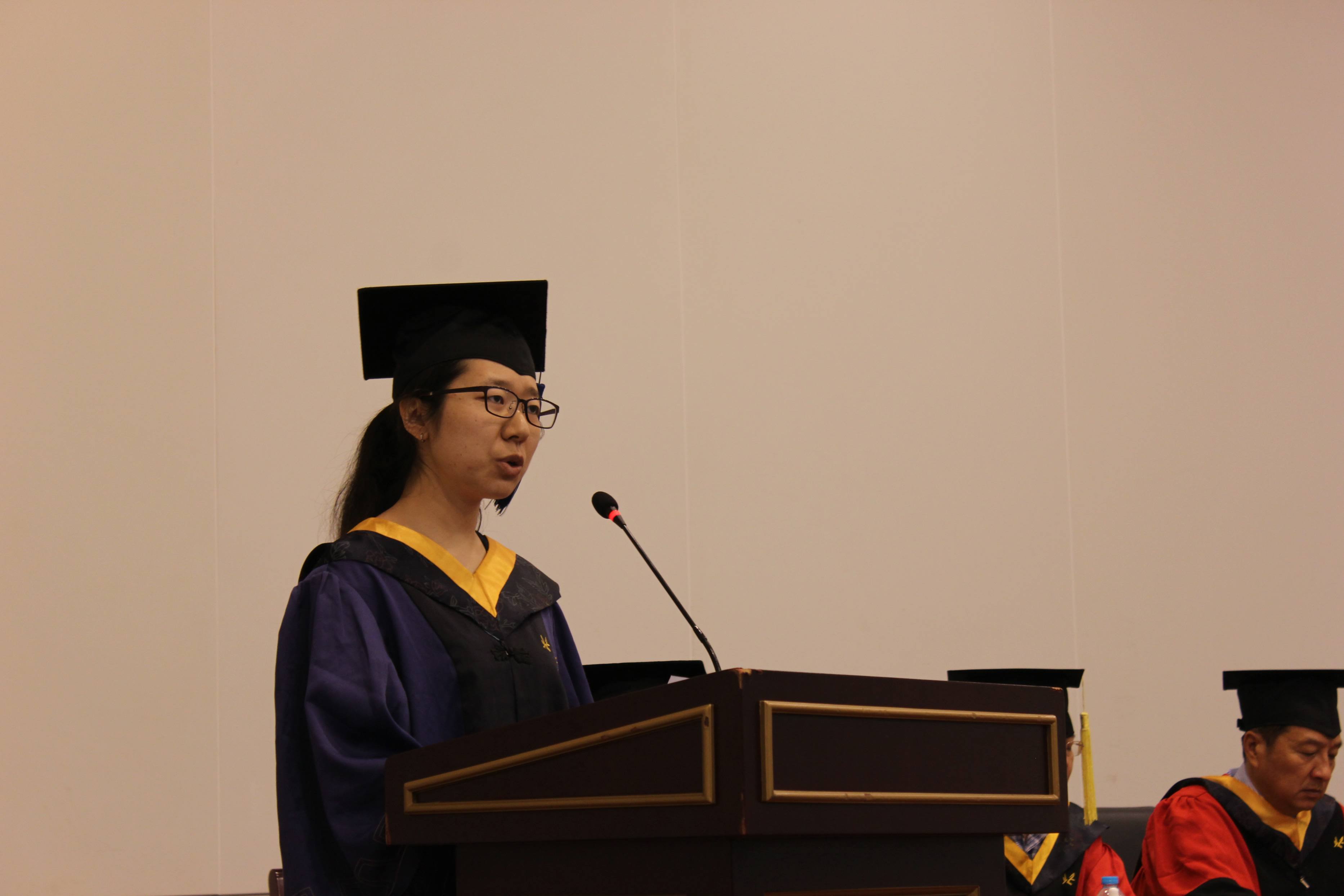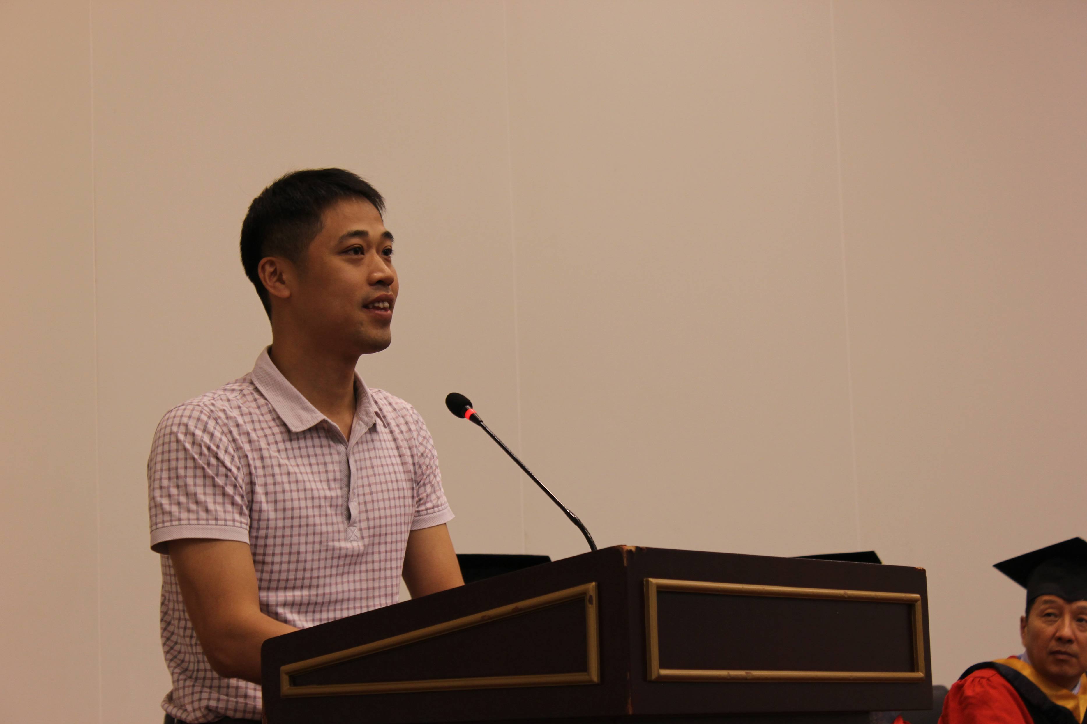 教师代表王党校老师向毕业生送上了真诚的祝福,并分享了“信念、方法、选择”三个关键词,希望毕业生能够珍惜在北航的经历,珍惜作为北航学子的荣誉,在各行各业踏实发展,追逐梦想。毕业生代表欧阳瑞洁同学,代表毕业生向父母、师长、同学、学校表达了感激之情,分享了自己在北航点点滴滴的生活感触,表达了自己作为一名北航人的骄傲与离校前的不舍。07届硕士校友代表,航天科工第二总体部总体室副主任曹伟,分享了自己的工作经历与心得,并表达了对全体2015届研究生毕业生的良好期冀与祝愿。