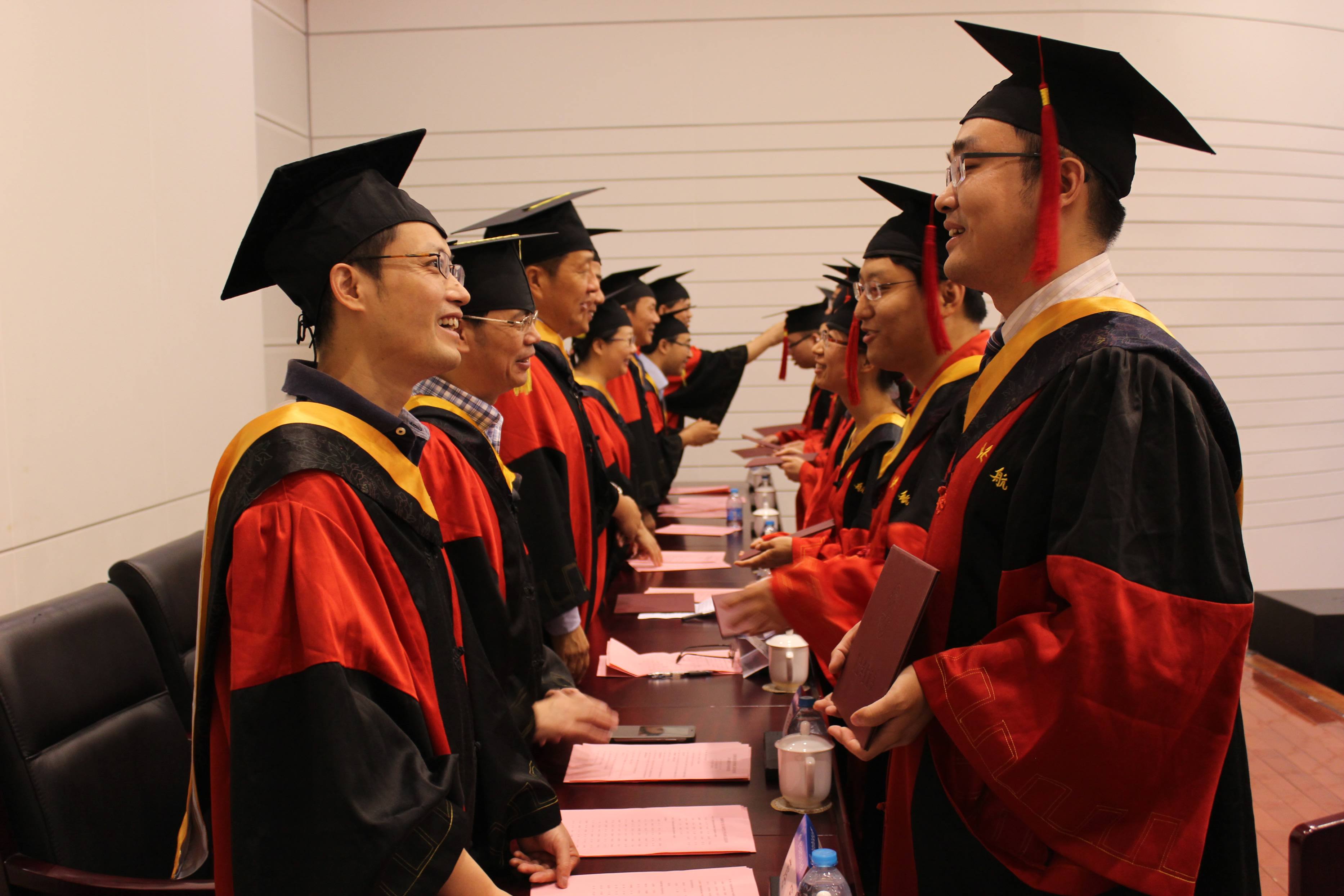 学院领导和学位分委员会委员宣读了此次毕业生名单,向全体毕业生颁发毕业证书和学位证书,为毕业生授予学位。公布并表彰了“北航优秀硕士学位论文”、“北京市优秀毕业生”、“北航优秀毕业生”、“就业奖学金”获得者,聘任8位毕业生作为校友联络员,以开展校友工作。