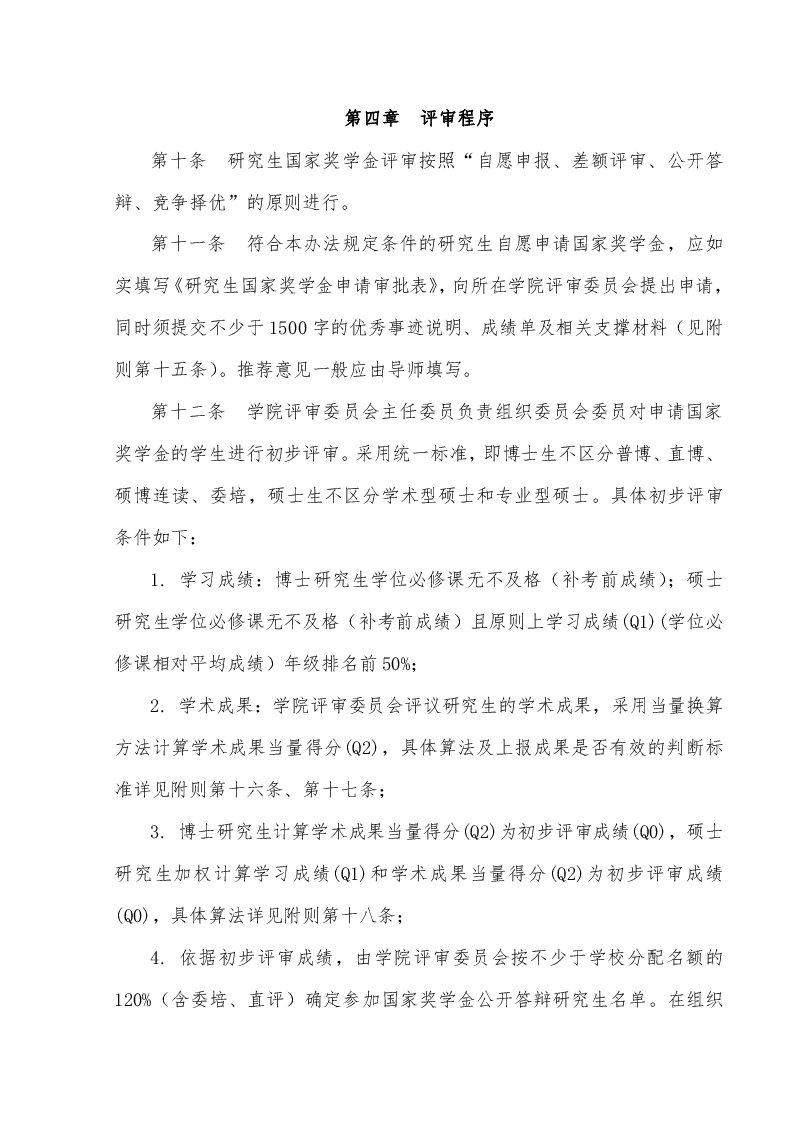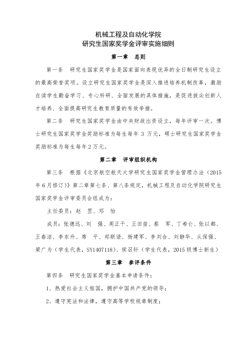 机械工程及自动化学院研究生国家奖学金评审实施细则
