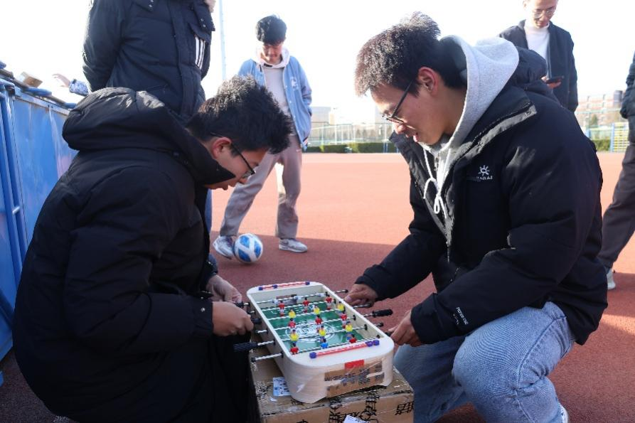 “桌上足球”赛场上演方寸攻防战!1对1的巅峰对决,及时不擅长体育运动的同学也能感受到足球特殊的魅力,点燃竞技热情。选手们灵活操控球杆,传球、抢断、射门一气呵成,双手的快速联动让足球在桌面飞速穿梭,获胜者更是斩获满满荣耀。