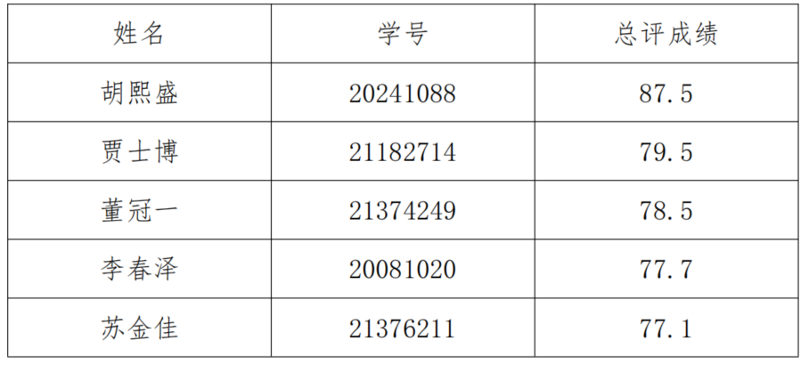 根据北京航空航天大学党校第七十五期学生入党积极分子培训班招生要求,院级党建工作坊按照2023年春季学期结业学员人数不超过45%比例,推荐优秀结业学员免试入学。第四期“探奥”党建工作坊结业学员共12人,按照学员综合表现及总评成绩排名,拟推荐以下5名学员免试入学: